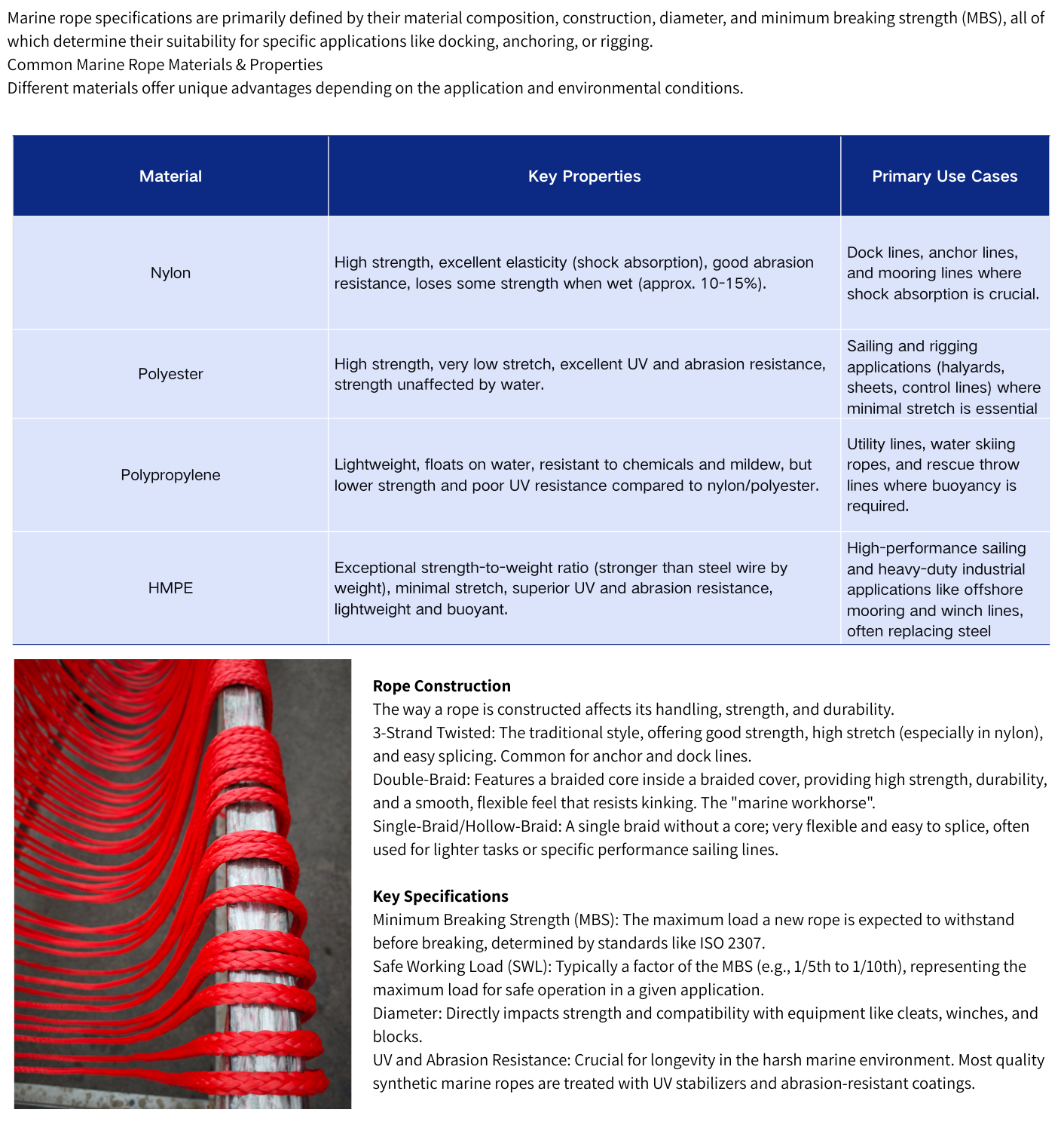 Marine rope, often referred to as boat rope or ship rope, is crafted specifically for use in marine settings. Marine ropes are usually made from durable synthetic fibers, employing braiding or twisting methods. Common types include three-strand ropes, single-braid ropes, and double-braid ropes. Thanks to their remarkable strength, buoyancy, resistance to corrosion, and protection against UV rays, marine ropes are ideal for enduring tough marine environments.