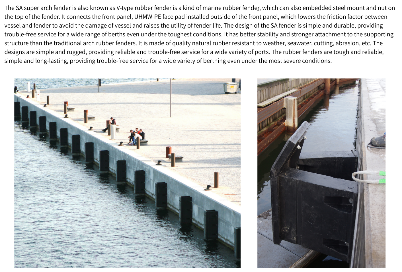 The Type V rubber fender is known for its cylindrical shape, which sets it apart from other types of fenders. It typically features a hollow core, allowing for flexibility and deformation when subjected to external forces. The fender is constructed using high-quality rubber compounds that exhibit excellent resilience and durability, ensuring long-lasting performance in harsh marine environments.