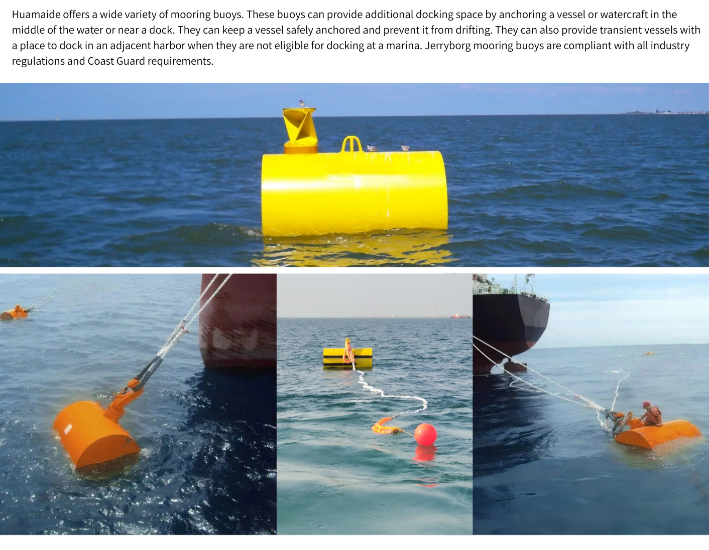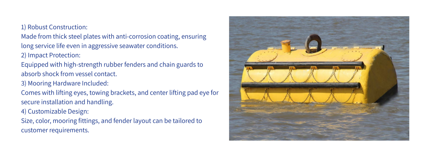 Steel Mooring and Support Buoys, also known as water drum buoys, are important devices for vessel anchoring, floating on the water surface with anchor chain through it. The ship can do follow work after anchored with mooring buoys: recharging, sheltering, degausing, etc.